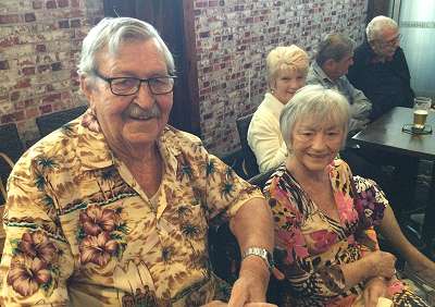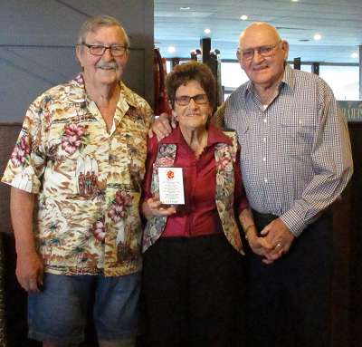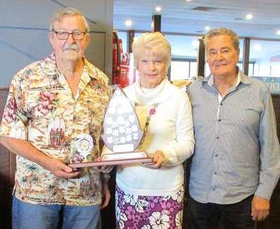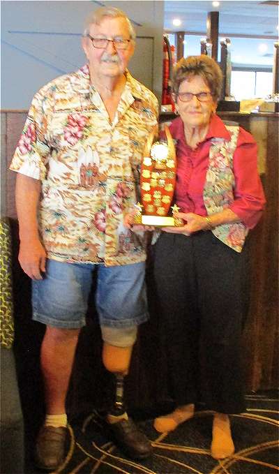 | Brian presents Marion with her replacement trophies for 2022 | Keith and Ida with their replacement trophy for all their trophies of 2022 |