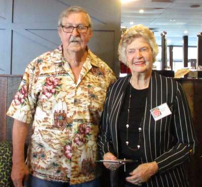 | Mel Cooper's Novice Collector Trophy presented by President Brian Cheers to Ida Dagan in his absence. | New President Don Hill and Marilyn Hill |
